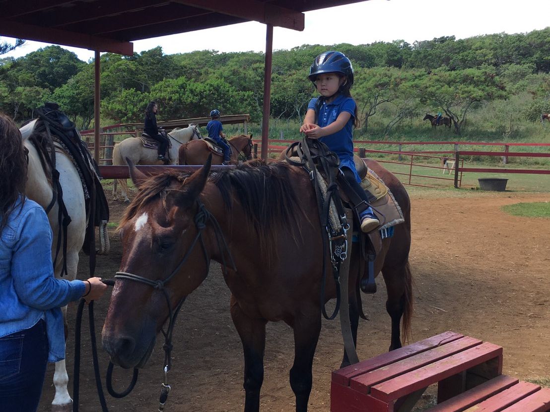 At North Shore, most of the riders were Westerners, and there were few Japanese people. I couldn't forget the horseback riding at Turtle Bay, so this time I decided to try the Hawaii Polo Club. This club trains retired polo horses for riding. The horse I rode was gentle and easy to ride. We set off with a group of six: four Western families, one solo Western rider, and me! It was a bit windy, but walking near the ocean was very pleasant. I was a little disappointed that we couldn't canter. It's about a 15 to 20-minute taxi ride from the town of Haleiwa towards Mokuleia Beach. Since there is no shuttle service, it's convenient to go by rental car. I would love to go again when I visit Hawaii.