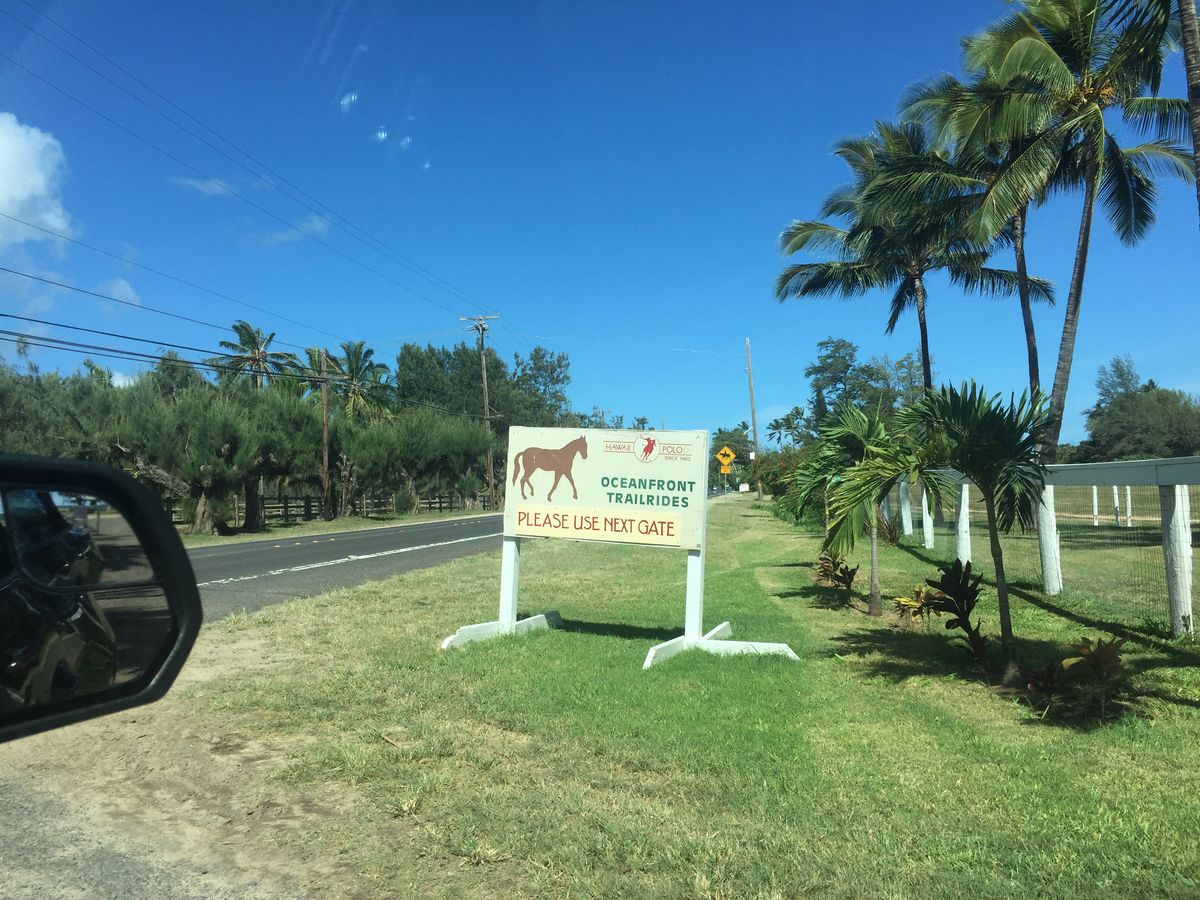 ノースショアは、乗馬してる人は欧米人ばかりで、日本人は少ないです。タートルベイでの乗馬が忘れられず、今回はHawaii Polo Clubに行ってみました。ここはPolo競技を引退した馬を乗馬用に調教して乗せてくれるクラブでした。私が乗った馬も穏やかで安心して乗れる馬でした。欧米人の家族連れ4人とお一人様欧米人と私の6名で出発!少し風が強かったですが、すぐ側に海が迫っている場所を歩くのは、とても気持ち良かったです。駈歩はさせてくれないのが少し残念でした。ハレイワの町からタクシーでモクレイアビーチ方面に向かって15分〜20分位の場所です。送迎無しなのでレンタカーで行くの