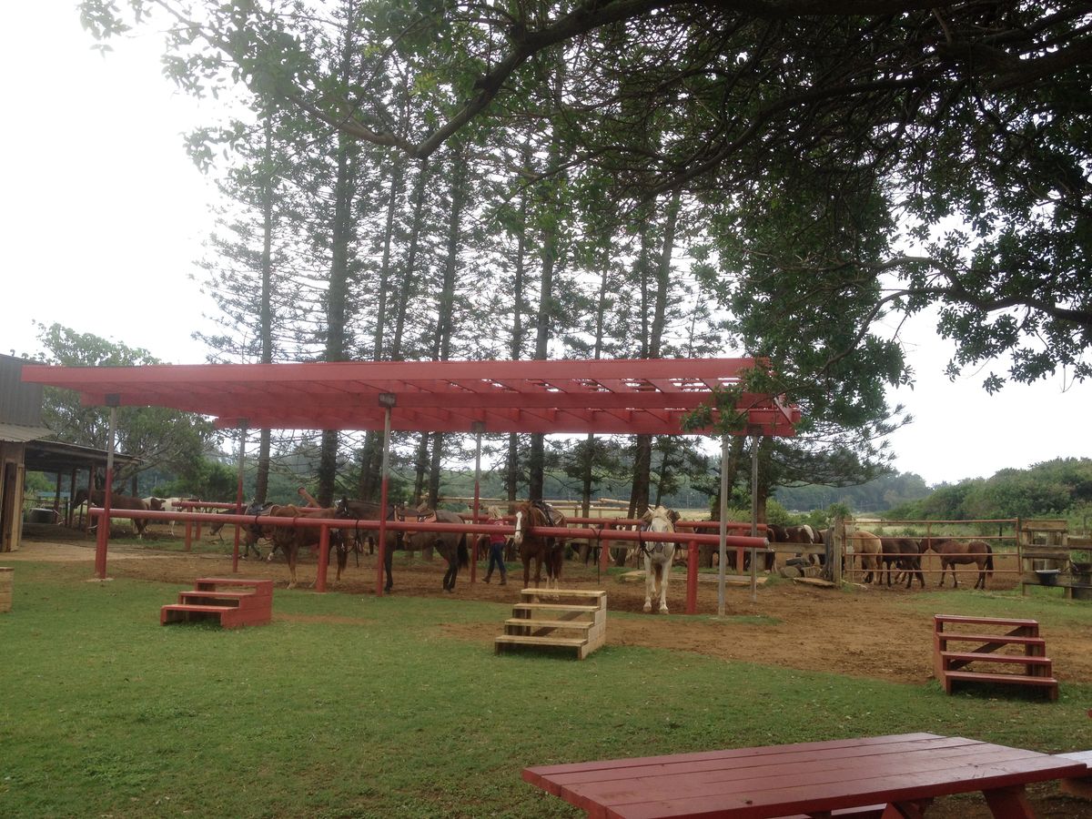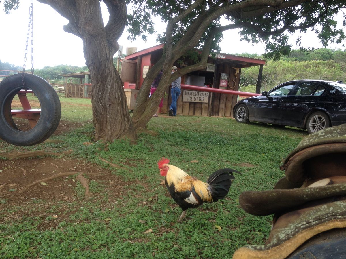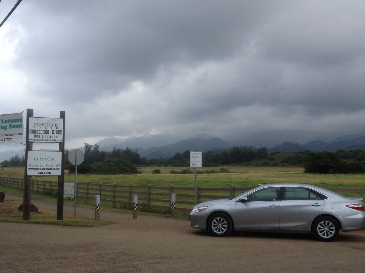 尚、牧場があるLaieは、ワイキキからレンタカーで1時間強かかるノースショアにあり、ポリネシアンカルチャーセンターの少し先。ワイキキの天気とは異なる場合があり、当初私が予約した日は、ワイキキは晴天だったが、現地は雨が降ったり止んだりで、トレイルがぬかるんで馬を走らせるのが危険とのことで直前に中止になり、途中で引き返すハメに遭い、たまたま空いてた翌日に予約し直して参加出来ました。ベルトラも現地催行会社も牧場も、とても親切な対応して頂いたので良かったですが、上級コース参加者はワイキキを出発する前に、牧場に直接電話して現地の天候をチェックし、ツアー催行の確認をお勧めします。初心者向けの歩きだけのコースは、多少の雨でも催行出来るそうです。