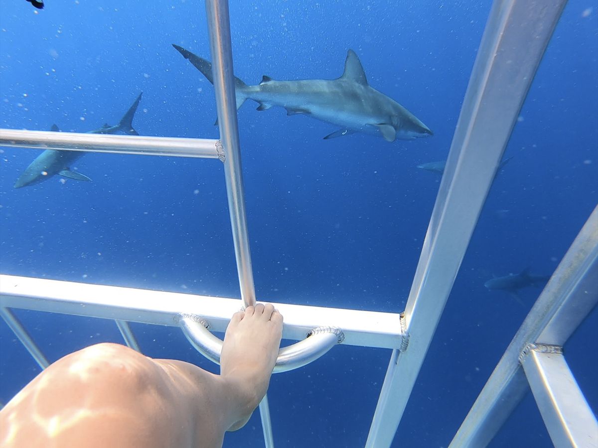 ▶サメのいるポイントについたらすぐにケージに入るよう案内があるので、シュノーケル装着等はしておきましょう!
