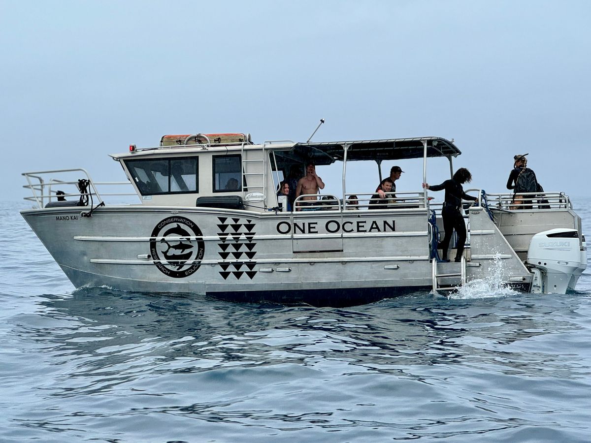 家族3名でツアーに参加しました。最初に予約した時は昼12時で予約していましたが、ワンオーシャンから朝一がお勧めだと連絡があり、8時に変更しました。送迎はなく、現地集合です。ハーバーの駐車場スペースは広く、駐車場の心配はいらないと思います。ハーバーでツアーの方と待ち合わせして、誓約書を記入して、船に乗り込みます。サメのポイントへ向かう間に、サメの注意事項などの説明があり、30分ほどでポイントに到着です。