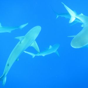 This was an awesome experience. I had done the shark cage before, but I never thought that I'd be able to swim with the sharks without cage. I was a bit skeptical about the safety, but once I was in the water, I didn't feel threatened at all. It was just a calm and relaxing experience, and the sharks were not interested in humans at all. The sharks we saw were mostly Sandbar Sharks and Galapagos Sharks, and they only eat fish. They were more attracted to the sound/vibration of the boat engine. So the guide instructed us to stay away from the boat, and we stayed together as a group. We only have a group of 5 with 1 guide and 1 photographer in the water, so the experience was very intimate.