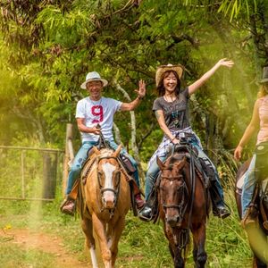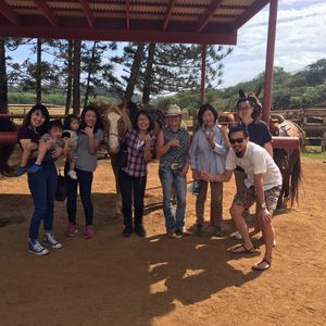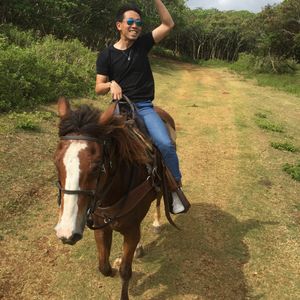 It was my first time horseback riding, and I was very satisfied after just one hour. Before the ride, there was an explanation in English, but it included gestures, so even if you don't understand English, you can somewhat grasp the information. There were other participants (foreigners) besides us, and we had a group of five plus one guide for the ride. During the ride, the guide spoke to us in slow English (asking things like where we were from). They were very kind, which was great. At one point, the horse stopped moving, but the guide handled it well. It was cloudy that day, but the greenery made for a very pleasant experience. It's a bit far from Waikiki, but I recommend it for beginners.