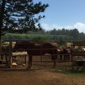 A horse and the first meeting to be taken care of after arrival this time. Our fellow is Keahi and Ruby. I have gentle eyes having the rich mane. I have you teach how to get on at once and am a walk start. A guide walks the top and arrives in the next. I can take in the muscle of the horse whenever I step forward, and one step is very powerful. We stretch out the back not to break preparations and add it and the pace of the horse. The scenery from the horse is high and feels the comfortable wind. I might stop on the way, but walk the way with the pitch difference easily. I took a photograph at the good place of the scene. It was the experience that I could taste beautiful air and scenery in instant one hour, and was valuable.