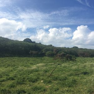 丘を登ると海が見渡せ、超高齢馬(34と36歳、普通寿命は25〜30年)が若い馬とのんびり過ごしていたり、野生の豚、牛、ロバ、ヤギ、羊、犬、ニワトリなどがみんな幸せそうに見えました。