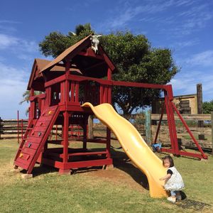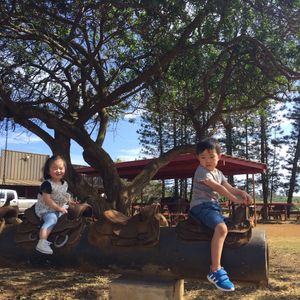 9歳の娘と夫婦とも、引き馬以外では初乗馬。でも、1時間半があっと言う間でした。広い牧場には昔のロデオアリーナ、さとうきび畑の灌漑の名残、第二次大戦に使われた武器庫?防空壕?などがあり、英語はあまり出来ない日本人にもゆっくり丁寧に説明してくれました。