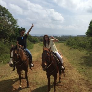 It's a one-hour course, and we were able to enjoy Hawaii's nature by going through the forest and to places where we could see the ocean. If I had to wish for something, I think it would have been even more fun if the horses had a bit more speed, but overall, I was satisfied with the experience.