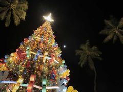 Every December, Downtown Honolulu lights up to celebrate the holidays with Christmas trees and lights decorated Hawaiian style and with the spirit of Aloha, and you can hop aboard a holiday themed double-decker bus to see these Honolulu City Lights!