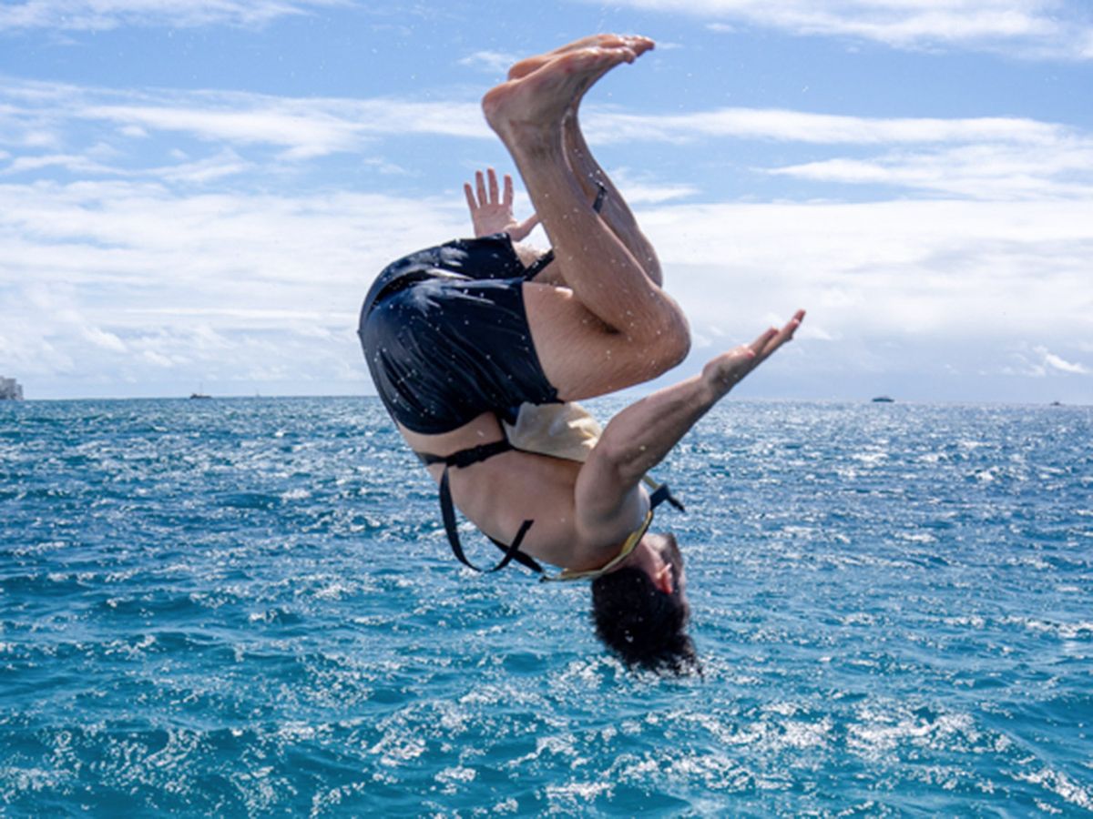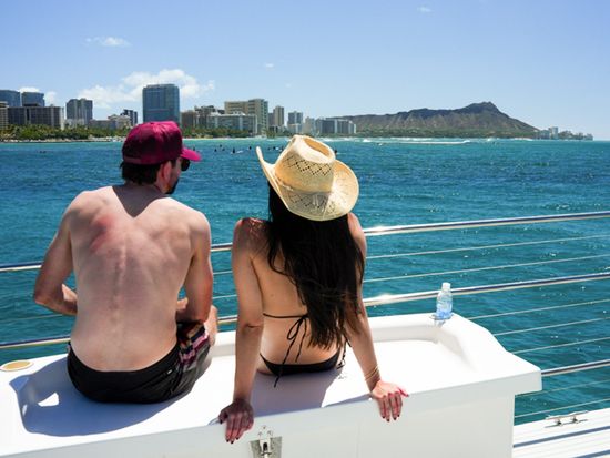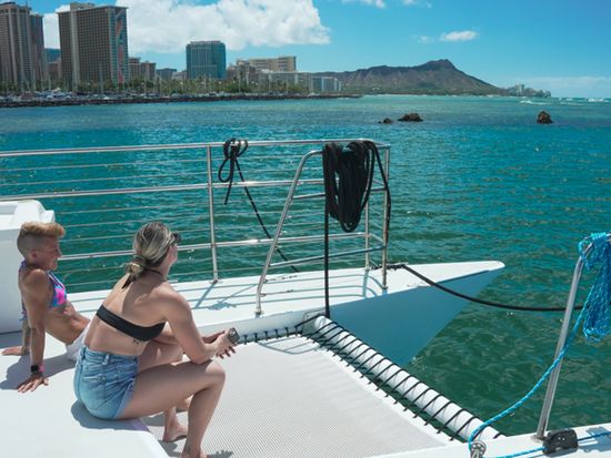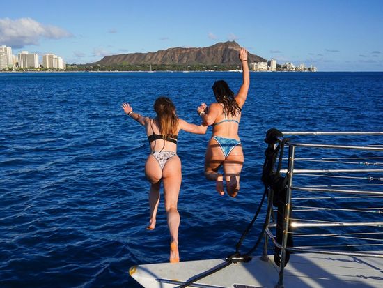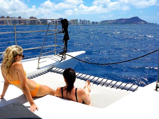 Experience one of the top things to do in Hawaii, and join Three Tiki on a beautiful Oahu sunset cruise aboard the Hokulani trimaran. Relax on the lounging seats as you sip your favorite BYOB drinks, and there are private boat charters available too.