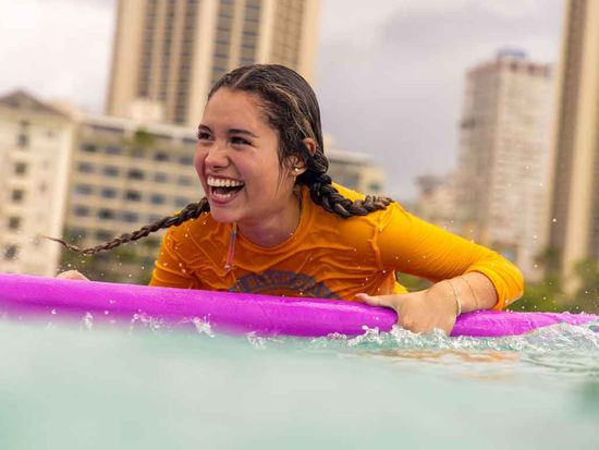 • Receive personalized surf instruction with a certified lifeguard-trained instructor in calm Waikiki waters.