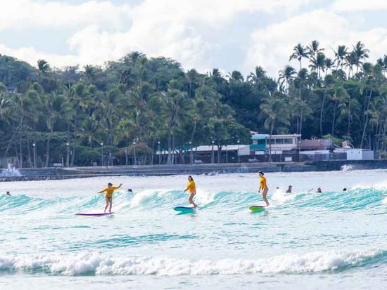• Learn to surf in Waikiki with a certified instructor, shared between three students for a private group experience.