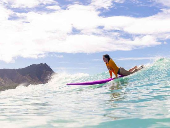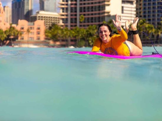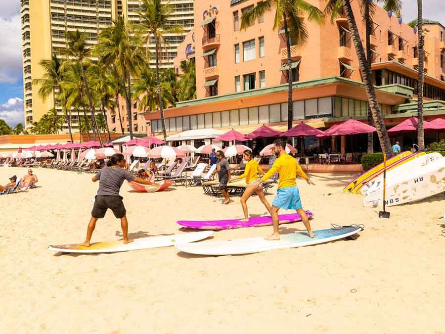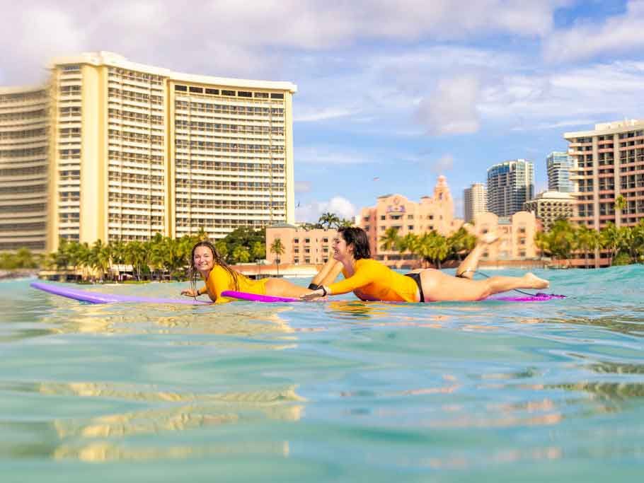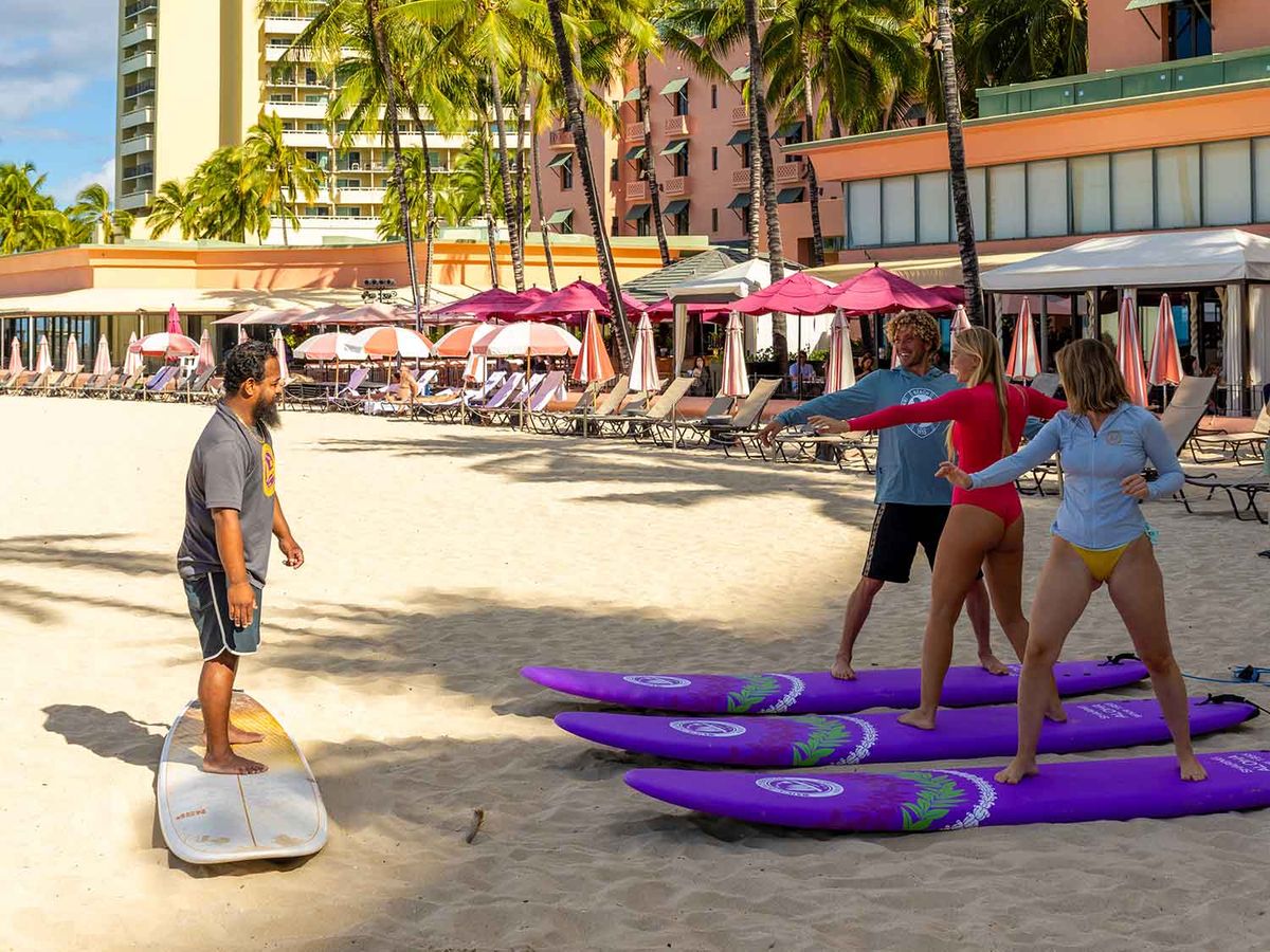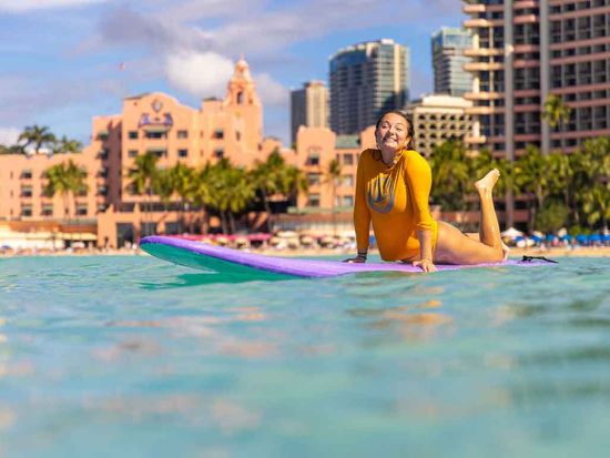 Book a private or small group surf lesson in Waikiki and ride waves with experts at the Royal Hawaiian Hotel. Ideal for beginners, sessions include beachside instruction, surf gear, and access to one of Hawaii’s best beginner-friendly surf breaks.