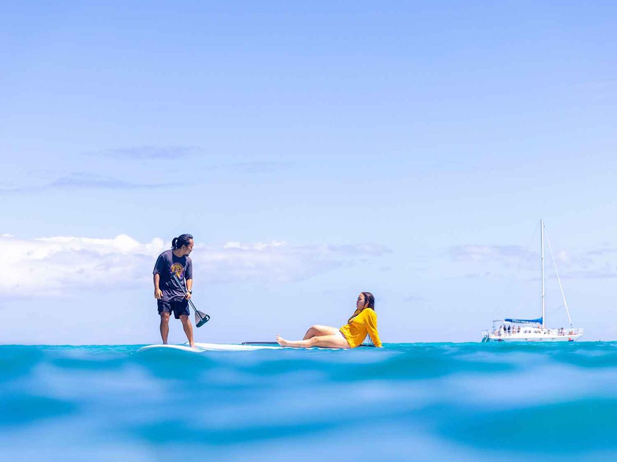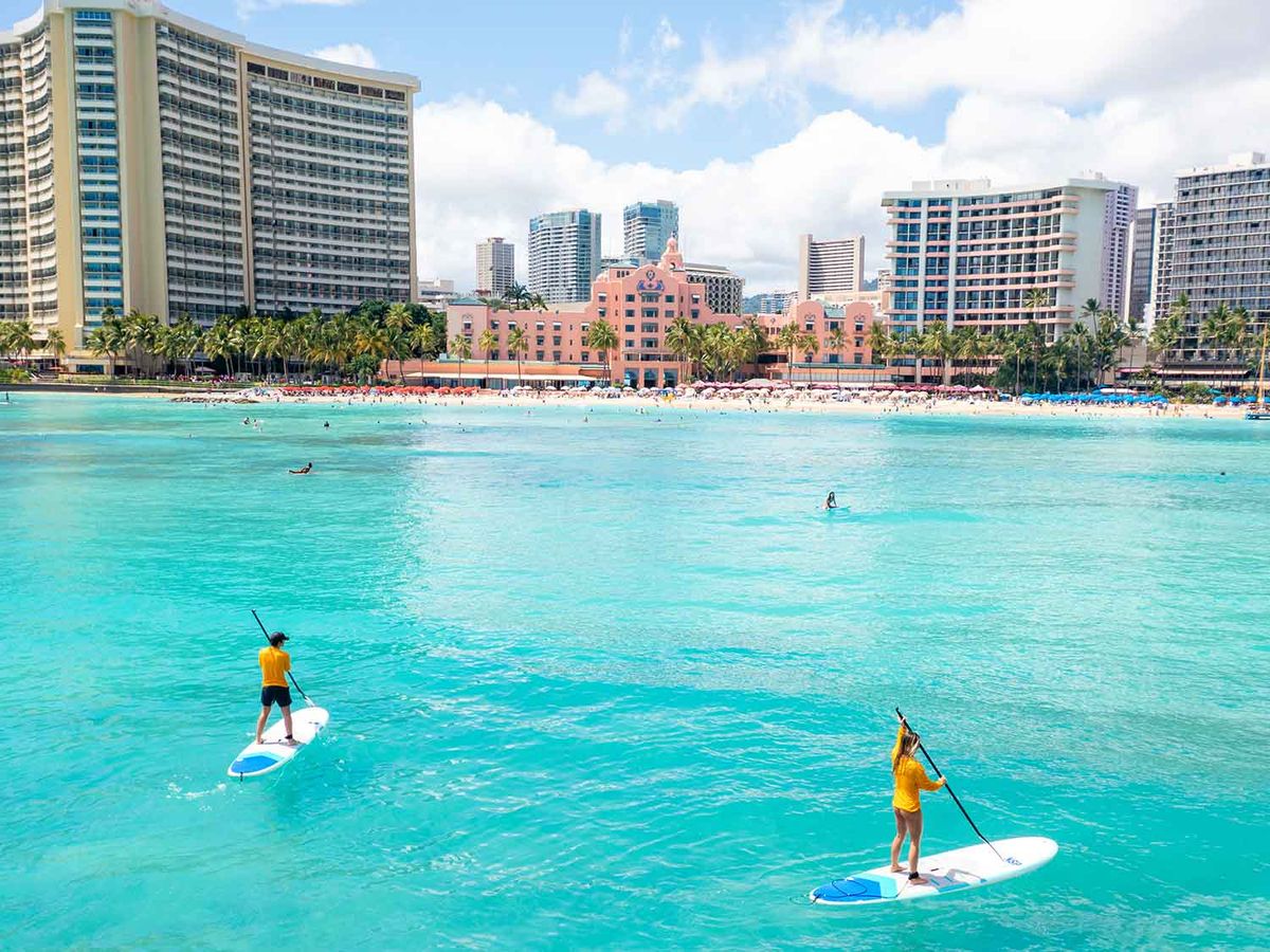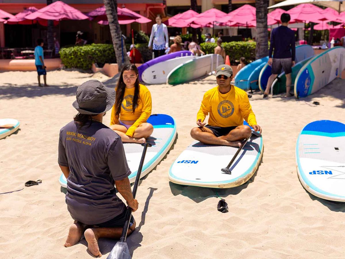 Book a private SUP lesson on Waikiki Beach and glide across waves with expert instruction in front of the Royal Hawaiian Hotel. This 75-minute experience includes all equipment, land-based training, and plenty of time to paddle and enjoy the views.
