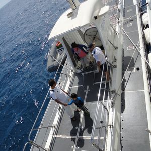 I had to wait for almost an hour until the others arrived to board the submarine, and the boat was rocking, making me feel sick. The weather was bad, it was cold, and the visibility was almost zero; I couldn't see anything. It was the worst.
