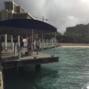 ヒルトンハワイヤンビレッジ、プリンスホテル、イリカイなどは、送迎は不要です。潜水艦へ向かうボードは、ヒルトンハワイヤンビレッジ付近のビーチの桟橋から出てくるのを知らずでした。
