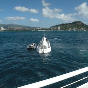潜水艦に乗り移る前の船で船酔いするとの書き込みがあったので事前に酔い止めの薬を飲んで参加しましたが、当日の天候によってはその必要は無いかもしれませんね、ハワイの海は魚礁のないところにはほとんど魚がいないんですね、海水が思っていた程澄んでいないのが残念でしたが、遭遇できない方もいらっしゃるという海亀に5~6匹も会えました(ラッキー!)