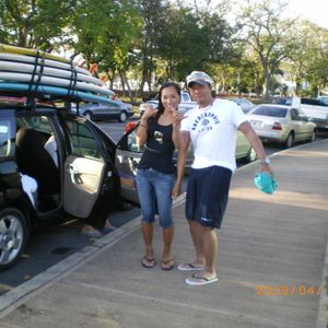 主人はサーフィン歴7年、私は初心者でしたが、アラモアナの方のビーチまで車で連れて行ってくれ、人も少なく主人も私も思う存分楽しめました。