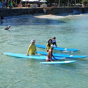 1人で2回目の参加でした!サーフィン初心者です。以前1度別のサーフスクールでプライベートレッスンを受けたことがありますが、こちらのグループレッスンは雰囲気的にも価格的にもよりリラックスして参加でき、気にいっています!インストラクターの方もみなさんフレンドリーで、サーフィンのことはもちろん、ハワイのことなど色々お話ししながら楽しめます!日によりますが日本語が話せるインストラクターもいらっしゃり、レッスンの流れや注意事項の説明は日本語表記があるため安心です。私のホノルルでの定番になりそうです!