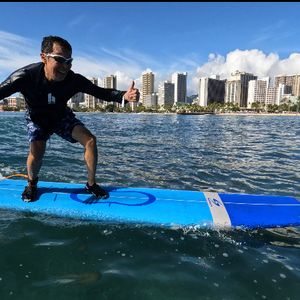 This was my second time participating alone! I'm a beginner at surfing. I had a private lesson at a different surf school once before, but the group lessons here are much more relaxed in terms of atmosphere and price, and I really like it! All the instructors are friendly, and we can enjoy chatting about surfing as well as various things about Hawaii! Depending on the day, there are instructors who can speak Japanese, and the flow of the lesson and important notes are explained in Japanese, which is reassuring. This seems like it will become my go-to in Honolulu!