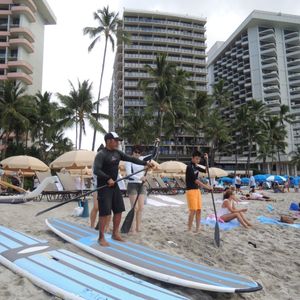 I attended with my wife. It was our first time doing stand-up paddleboarding, and we had a great time. The winter Waikiki Beach has calmer waves compared to places like Kailua, and the water is clear, allowing us to see corals and sea turtles, making it an excellent spot for beginners. It's also just a short walk from our hotel, and the lessons are brief, so it's really recommended for those looking to "experience" it.