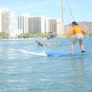 My children, aged 12 and 8, participated in private surfing lessons. Even without being able to speak English, they were able to enjoy the lessons and had a great time surfing. It was their first time surfing, but the waves in Waikiki are definitely recommended for beginners! They were able to ride the waves right away! Thanks to this, we were very satisfied! My kids have come to love surfing!