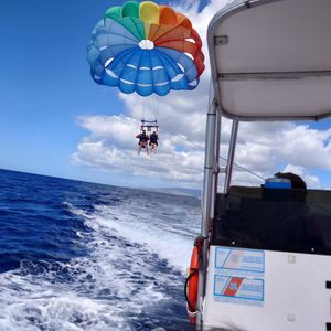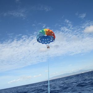 I had always wanted to try parasailing, and I thought it would be amazing to experience it in Hawaii, so I decided to go for it and signed up. The breathtaking views from Waikiki to Diamond Head, along with the refreshing feeling and thrill, were incredible. I was a bit worried that the guide only spoke English, but they lightened the mood on the boat with jokes in Japanese, which made me feel at ease and I had a lot of fun. I'm really glad I participated. I splashed into the sea multiple times up to my chest!