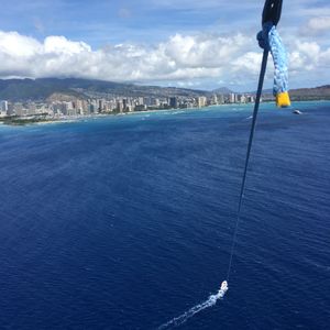 During parasailing, it was refreshing! I felt like a bird. We flew quite high, allowing us to see all of Waikiki, which was a wonderful experience.