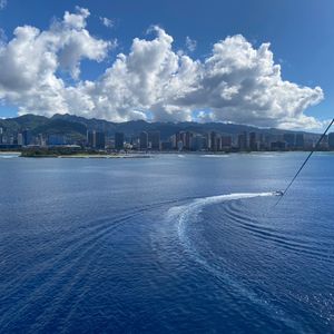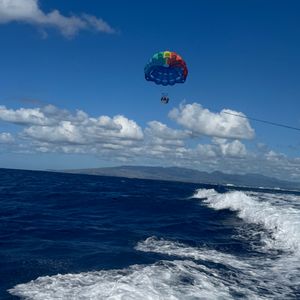 Parasailing with my 83-year-old mother was amazing. We got to see Diamond Head and the city skyline from high up in the sky, which was fantastic. The final splash left us quite soaked, and water splashed on our faces, but it was incredibly fun!