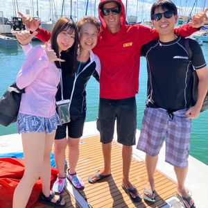 天気もよく、風もそこそこ強く、安定したセイリングを楽しみました。家族3人で、いい想い出ができました。お約束のジャパンも気持ち良かったです。行き帰りの船はかなり揺れるので、酔い止め薬をおすすめします。中国陣グループの若い女性が、となりに座っていた白人にゲロをぶちまけるというハプニングがありました。船を止めて、被害者は海にとびこみ汚れを洗い流していました。