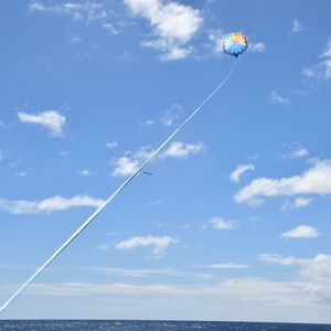 凧揚げをするように船で走りながらワイヤー付きのセイルを飛ばすアクティビティです。