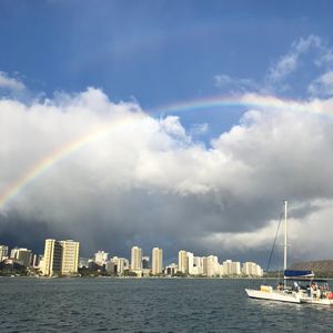 ボートから海にスライダーで飛び込んだり、フロートで浮いたり!大きなダブルレインボーも見えてラッキー!
