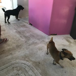 可愛いワンチャンが2匹お出迎え。わたくし動物は苦手ですが、とても大人しいので全然大丈夫でした。