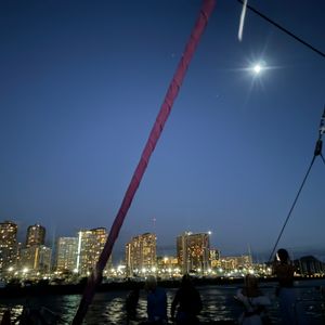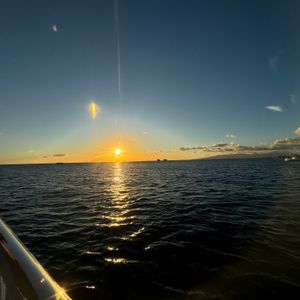 During the time I stayed, the sunset was positioned more to the right, making it difficult to see from Waikiki due to buildings obstructing the view. However, on this cruise, I was able to see the sunset beautifully! It was a wonderful experience.