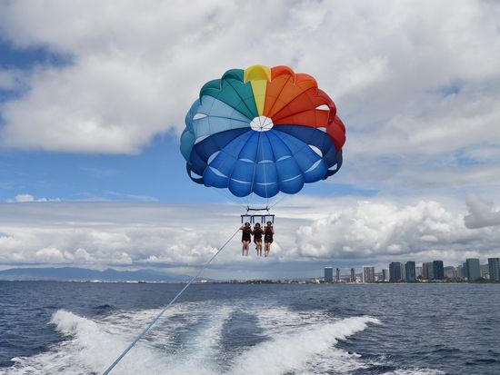 I finally managed to convince my wife to go parasailing. At first, I was filled with fear, but according to her, once we were up in the air, we could see Diamond Head, the hotel we were staying at, and Waikiki Beach. It was the best location!