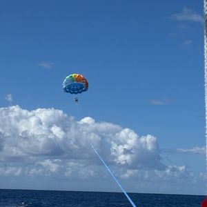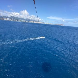 I wanted to try parasailing in Hawaii! The boat sways a lot, so it's better to take motion sickness medication. It wasn't scary at all, just a lot of fun. You can see Diamond Head, and the scenery is amazing! The instructor was cheerful and made it enjoyable. I want to do it again someday! Thank you very much.