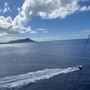 ハワイでやってみたかったパラセーリング!船はすごく揺れるので、酔い止めは飲んでいた方がいいです。全然怖く無くてただただ楽しかったです。ダイヤモンドヘッドが見えたり、景色も最高!インストラクターも陽気で楽しかった。またいつかやりたいです!ありがとうございました。