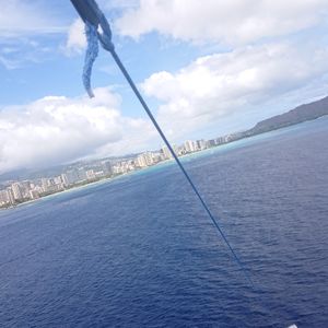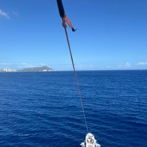 This was my second time participating, following last year. Thanks to the cheerful staff, I quickly ascended to 150 meters above ground. It was a refreshing flight while enjoying the view of Waikiki Beach and Diamond Head with the blue ocean below. On the way back, we raced back to the port, bouncing over the sea. I want to experience it again.