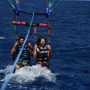 The crew was lively and really got everyone excited. We rode on one boat with 12 people and took turns parasailing. They took photos for us, and I purchased them for $40. They took many beautiful pictures, which became great memories of the trip.
