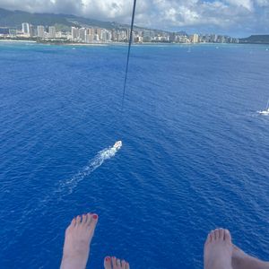 The parasailing was the highlight of our trip to Hawaii! Despite my son's challenges, he had a wonderful time soaring through the sky. I am extremely satisfied that he was able to have such a fantastic experience, thanks to the kind-hearted captain, the assistant, and the receptionists. Thank you very much!