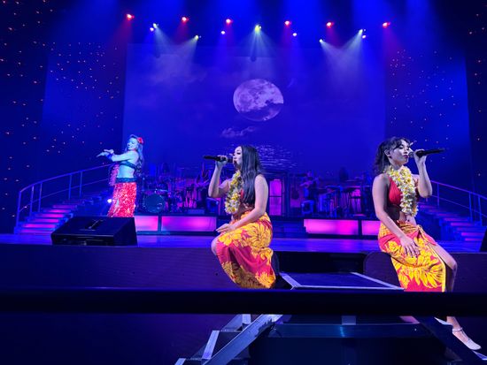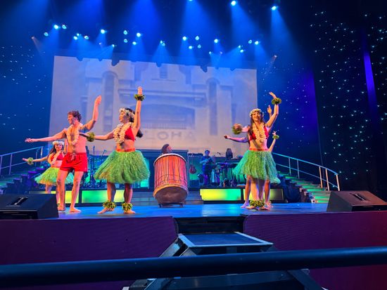ステージではフラやタヒチアンダンスも見れたしエルビスプレスリーとマイケルジャクソンがすごーく似てたし曲やダンスも懐かしいし時差ぼけで眠かったにも関わらず最高のパフォーマンスを見せていただきました。