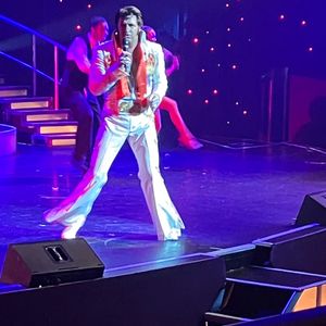 Although we didn't have the top-tier tickets for the show venue, we were close to the stage and it was exhilarating! Elvis came right up to us, and we even got to shake hands. Unfortunately, the scarf was given to someone at the next table... Even though we aren't very good at English, we were able to enjoy the stage thoroughly and would love to come back.