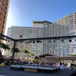 I previously participated in a luau at Hilton on the Big Island, but this was my first time on Oahu. It was a luau on a rooftop surrounded by hotels, and the show was wonderful. If I understood a bit more English, I might have grasped the explanations better, but I still enjoyed the stage performance. After the show, the dancers were also happy to take photos, and it seemed like the kids had a great time. Above all, it really felt like I was in Hawaii.