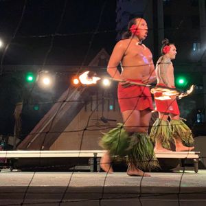 The weather was wonderful, making it a perfect day. I was torn between a dinner cruise and a luau show, but choosing the luau show was definitely the right decision. There were families present, so I felt comfortable enjoying it! The dynamic fire show and the beautiful hula were both fantastic. I even got to participate in the show with the dancers... The buffet-style meal, where you can choose what you like, was also great. Everyone who participated was very happy, and I was extremely satisfied!
