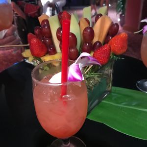 The food was delicious, and the seating was right in front, which made me very satisfied! I had such a fun time. The lively atmosphere felt very much like being abroad, and I was really glad I came to Hawaii. The welcome drink was tasty, and I could choose between alcoholic and non-alcoholic options. The fruit platter was cute, and everything was enjoyable from start to finish. The main dish, lobster, and the seasoning of the meat were just right, and I finished it all (laughs). It might have been a bit too much for Japanese people, but I was able to eat slowly, which was really nice. The show was loud, almost full, and even without understanding English, I enjoyed just watching it. I definitely want to make a reservation again next time! They also took photos for us, which became a memorable keepsake. Other Japanese guests seemed to be having a great time too, and since the location is facing Kalakaua Avenue, it was easy to find. I felt that the atmosphere is really important. Time flew by quickly. The Hawaiian vibe, the excitement of being abroad, and the food all resulted in complete satisfaction! I thought I might not need the photos, but it’s nice to have something tangible to remember it by. We could also take videos and photos, which made for fun memories!