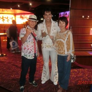 初めはカクテル、フルーツなど別料金かなと不安なままいただいてました(実際はその後も追加料金なし)。一緒に記念写真を撮ったエルビスはホンモノ?というかホントにこれから舞台に登場する本人だとわかった頃から、ようやくVIP扱いなんだと実感が沸き、その後はVIP気分で楽しめました。
