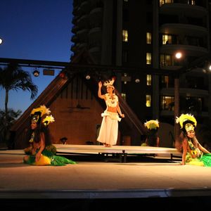 My wife and I participated together. The course I chose involved dining outside before watching the show, but even during our meal, the hula dancers we saw before entertained us by coming around the tables to sing and dance. The staff was also very hospitable, making it enjoyable even before the show started. The location was easy to find on the 4th floor of the Royal Hawaiian Center, and of course, the show was fantastic.