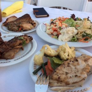 18:30に入店し、テラスでディナーをしていると相席の日本人の方とお話しながら、お食事を進めました。お食事は まぁ普通で特に美味しいとかまずいとかはないです。でも、フラを間に取り入れてくれて本当に楽しい時間でした。だから、食事はどうでもよかったです。20:00からは楽しいショウータイムで、ガガ、マイケル、エルビスと歌に踊りにフラによく構成された内容でした。マジ!!楽しかったです。最後は 写真を一緒に撮ってくれて、思い出になりました。サンキュー♪ エルビスのそっくりさん、娘とのフォトGOODでしたよ。