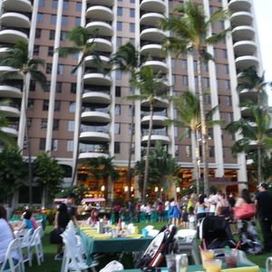 会場に入るのにこれでもかというくらいならんで待たされた。はいるところで1グループごとに写真をとっていたのでそれが混雑の原因と思われますがもうちょっとなんとかならないものでしょうか?食事もホテルで出す料理なのでもうちょっとなんとかならないのでしょうか?まずかったです。ショーの内容もシェラトンカイウラニのショーの方がハワイの歴史をたどっていて面白かったです。全体的にいまいちでした。