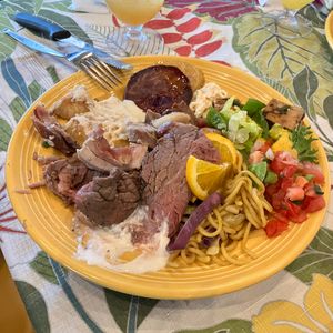 The food and live performance were absolutely amazing and created a great atmosphere! The buffet style and the variety of dishes (including desserts) made it a perfect choice to go there hungry. Additionally, there was a wide selection of alcohol and drinks! It was fun to have live music close to our seats and to interact with the staff.