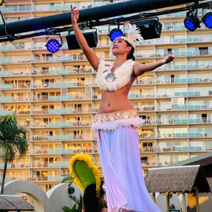 The main show incorporated Hawaiian elements and featured Hawaiian music along with songs from Elvis Presley and Michael Jackson, taking us through different eras.
